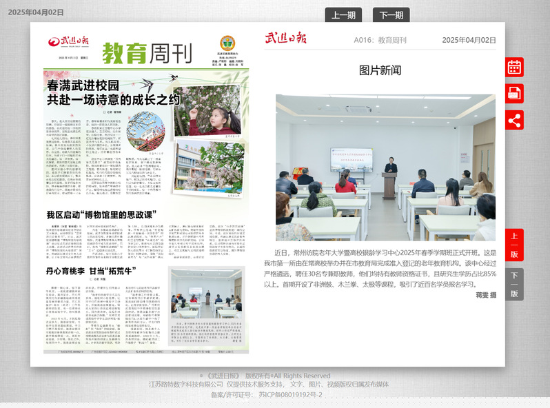 學(xué)雷鋒、做志愿、服務(wù)改革建新功——我校開展學(xué)雷鋒志愿服務(wù)月活動2025-04-07為深入貫徹落實(shí)習(xí)近平總書記關(guān)于弘揚(yáng)雷鋒精神的重要論述,深刻把握雷鋒精神的時(shí)代內(nèi)涵,引領(lǐng)常紡青年在志愿服務(wù)實(shí)踐中大力弘揚(yáng)“奉獻(xiàn)、友愛、互助、進(jìn)步”的志愿服務(wù)精神,今年3月,以“學(xué)雷鋒、做志愿、服務(wù)改革建新功”為主題,系統(tǒng)部署開展2025年“學(xué)雷鋒”志愿活動月專項(xiàng)活動。通過組織全校師生開展30余場主題鮮明、形...省委第十巡視組巡視常州紡織服裝職業(yè)技術(shù)學(xué)院黨委工作動員會召開2025-04-04根據(jù)省委關(guān)于巡視工作的統(tǒng)一部署,2025年4月2日,省委第十巡視組巡視常州紡織服裝職業(yè)技術(shù)學(xué)院黨委工作動員會召開。省委第十巡視組組長李圣華作了動員講話,對深入學(xué)習(xí)貫徹習(xí)近平總書記關(guān)于巡視工作的重要論述、關(guān)于教育的重要論述和對江蘇工作的重要講話精神,認(rèn)真貫徹落實(shí)全省巡視巡察工作會議暨對村巡察工作推進(jìn)會、省委...